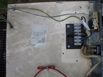 Co się okazało? Już poprzednio wiedziałem, że termostat jest podłączony tylko do obwodu zasilanego prądem o napięciu 230V. Dziś okazało się, że jest po prostu zepsuty. Trzeba więc było odłączyć od niego przewody i spiąć je na krótko — co zresztą widać na zdjęciu. To te dwa czarne, owinięte szarą taśmą.