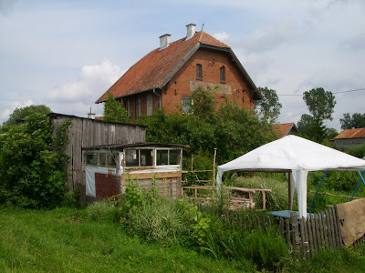 Pole biwakowe znajdowało się na terenie sporego gospodarstwa, którego właściciel wynajmuje pokoje turystom. W zamian za kilka złotych dziennie mogliśmy rozłożyć się nad samym brzegiem jeziora Harsz i korzystać z wygód — to znaczy wody z kranu kilkaset metrów dalej, sławojki, i kąpieli w jeziorze. O podłączeniu prądu, prysznicach, bieżącej wodzie, porządnych toaletach — nie było mowy.