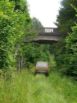 A następnie, ruszyliśmy dalej nasypem, którym biegła wspomniana linia kolejowa. Ten odcinek najbardziej zapadł mi w pamięć. Nie ma nic piękniejszego, niż przedzieranie się samochodem przez dziką przyrodę, jadąc w koleinach po nasypie kolejowym. Gdzieniegdzie czuć było jeszcze podkłady kolejowe. Trasa wiodła przez łąki, ale także między bagnami — i to podobało mi się najbardziej.