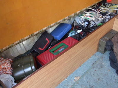 Wszystkie te rzeczy jeżdżą „luzem”, i nie można ich pochować do szafek ani do „bagażnika”, czyli do schowków pod kanapą. Nie można, bo tam też jest masa ciekawych rzeczy.
